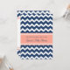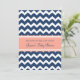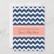 Personalisierte Babydusche Einladungen in eleganter und moderner dunkelmarineblau, hellpfirsichfarbenes orangefarbenes Rosa und weißes Zickzack Zickzackmuster. Anpassbar mit Ihrem Text, kontaktieren Sie uns, um eine Farbänderung anzufordern.