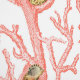 Dieses lebendige Korallendesign ist perfekt für die ozeanisch inspiriert Küstendekoration geeignet und zeichnet sich durch ein Schnittmuster von Korallenästen auf weißem Hintergrund aus. Die Muscheln sind über die Äste verteilt.