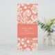 Heiratskarten in eleganter pfirsichorange und creme-creme-weißer klassischer Blumendampf-Muster, vollständig anpassbar mit Ihren Namen und Hochzeitsdetails, die perfekte Möglichkeit, Ihre Hochzeit zu Freunden und Familie anzukündigen. Erhältlich in einer breiten Palette von passenden Hochzeitsprodukten.