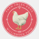 The Coral Farm Fresh Eggs Label features a vintage-style chicken illustration with crisp white lettering on a warm coral red background. Perfect for labeling egg cartons, farm produce, or homemade goods, this personalized sticker brings rustic charm and a handcrafted touch to your local farm or backyard business.