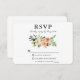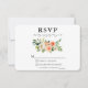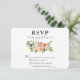 Die moderne Elegant Watercolor Coral Floral Greenery Wedding RSVP Card beinhaltet korallenweiße Rosen und andere schöne Grünflächen. Runde Kanten.