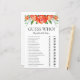 Diese schöne Koralleninsel Rose Guess Who? Brautparty-Spielblatt ist elegant und charmant - perfekt für jede Gartenhochzeit, botanisch, rustikal, romantisch, floral, formell oder Vintage Hochzeit. Seine exquisite Kombination aus anmutigen, mehrfarbigen Korallenbäumen und weich gepflanzter Vegetation ist geflogen, zart und schön. Dieses lustige und leichte Spiel bringt jedem Brautparty viel Lachen. Einfach jedem Gast ein Blatt geben (vergessen Sie nicht die Stifte) und den Spaß gelassen beginnen! Sie werden erstaunt sein, wie viele Antworten die Leute richtig machen. Um dieses Spiel zu Ihrem eigenen wählen Sie einfach Personalisieren diese Vorlage und geben Sie die Namen der Braut und Bräutigam.