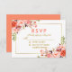 Aquarellfarbene Korallenkoralle Gold Wedding RSVP Card - Goldrahmen, Korallenrückwand