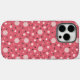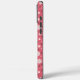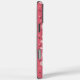 A modern geometric pattern featuring soft blush hexagons and dark charcoal triangles set against a vibrant coral-pink background.