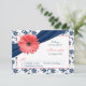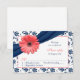 Coral Gerber Daisy Navy Damask Floral Wedding RSVP Karte