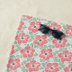 Tropical chic monogrammed beach towel features an allover pattern of coral hibiscus flowers and tropical green leaves, with your single initial monogram centered at the bottom.
