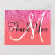 Coral Hot Pink Ombre Glitzer Monogram Vielen Dank Postkarte