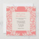 Diese Coral Lilie Modern Wedding Einladungen sind mit einem Damast-Lilie Muster in Reispapier weiß auf einem Korallenboden. Fügen Sie Ihre Informationen mit der Vorlage hinzu. Klicken Sie auf "Anpassen", um Änderungen am Schriftart und an der Textplatzierung vorzunehmen.