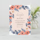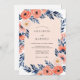 This design features a lush arrangement of coral and peach peonies paired with deep indigo blue foliage. The watercolor style creates a romantic atmosphere, perfect for a spring event. Soft cream highlights and delicate leafy branches surround the artwork. The warm and cool tones provide a sophisticated contrast.