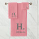 Das Coral Mit Monogramm Bath Handtuch Set sorgt für eine gelungene Mischung aus lebendigem Stil und personalisierter Eleganz. Dieses Set ist für Komfort, Haltbarkeit und eine individuelle Touch konzipiert, die es zu einem einzigartigen Erlebnis macht. Eine fröhliche und warme Korallenfarbe, die jedem Badezimmer einen farbenfrohen Pop verleiht. Das elegante graue Monogramm und der Familienname verleihen dem Ganzen ein personalisiertes Detail. Set: 1 Waschlappen, 1 Handtuch, 1 Badetuch