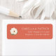 This is a minimalist style image featuring an elegant wedding address label with a soft coral background. A delicate white flower adorns the left side, adding a touch of natural beauty and sophistication. The text "ISABELLA & PATRICK" stands out in clean, modern typography, followed by their charming address in Naples, Florida. It exudes warmth and refinement, perfect for formal invitations or personalized stationery that conveys love and grace.