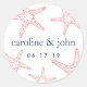 Coral & Navy Starfish Personalisierte Hochzeit Runder Aufkleber
