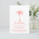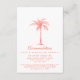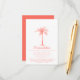 Mit dieser eleganten Einschließungskarte mit modernen Schrift- und Korallentexten, inklusive einer künstlerischen Palme, können Sie Ihren Gästen alle Ihre Hochzeitsunterkunft oder andere relevante Details anbieten. Auf der Rückseite der Karte befindet sich ein korallendurchsichtiger Hintergrund. Ideal für eine Hochzeit am Strand oder im Freien. Wenn Sie Hilfe oder eine individuelle Bestellung benötigen, kontaktieren Sie mich bitte.