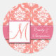 Coral Pink Damask Wedding Gefallen Sticker Pink