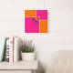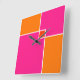 Coral Pink Orange Squares Quadratische Wanduhr