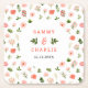 Dieser wunderschöne und elegante Untersetzer mit seinen korallenrosafarbenen rote Rosen und dem Laub. Der Text kombiniert handgeschriebene Skript- und Serif-Schriftart für ein stilvolles und modernes Aussehen. Das ist perfekt für einen Frühling oder Sommer rustikale Hochzeit.