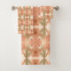 Stilvolles Handtuch-Set in einem rosa Korallentuppenprint. Der weiße Hintergrund kann in jeder Farbe personalisiert werden, um eine stilvolle und moderne Wohngestaltung zu schaffen.