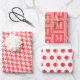 Coral Red Hahnentrittmuster Monogram Polka Dot Geschenkpapier Set