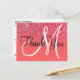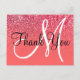 Coral Red Ombre Glitzer Monogram Vielen Dank Postkarte