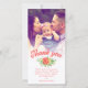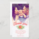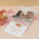 Taufe Foto-Karte personalisiert mit einem Foto von Ihnen schönen Baby. Vielen Dank, dass Sie in einem wunderschönen Korallenbürstenskript über einem Rosenbukett in warmen Farben und eine persönliche Nachricht an Ihre Taufgäste geschrieben haben. Der Rand zwischen Foto und Text der Hochzeit wird durch einen weißen Farbverlauf gemildert. Gib auch deine Namen!