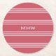 Coral Red Stripes kundenspezifische Monogramm-Unte Runder Pappuntersetzer