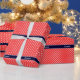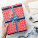 Coral Red, Wht Polka Dots Navy Name Monogram Geschenkpapier