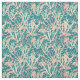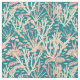Coole, aquamarine Stoffe, bedruckt mit einem zeitgenössischen Korallenriff-Muster in Korallen- und Rosatönen.