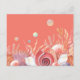 Umschließkarte mit Strandkoralle auf einem orangefarbenen Sonnenuntergang.