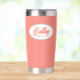 Verschenken Sie Ihre Hochzeitsjury mit diesem trendigen und personalisierten, rostfreien Edelstahl, Thermalwäscher mit ihrem Namen in stilisierter Schrift in einem weißen ovalen Design. Hintergrundfarbe und Skript ist eine Korallenfarbe. Personalisieren Sie Ihren Wärmeleiter, indem Sie den Namen der Brautjungfrau mit dem gewünschten Namen bearbeiten und ersetzen. Erhältlich in vielen beliebten Hochzeitsfarben.