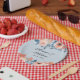 Coral und Dusty Blue Botanical Floral Wedding Pappteller