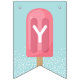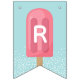 Dieses niedliche Fahnendesign aus dem Sommer passt zu unseren Einladungen aus der beliebten Geburtstagsfeier und bietet sechzehn benutzerdefinierte Textfelder, um Ihre Botschaft zu vermitteln (gezeigt mit "Happy Birthday"), mit weißem Buchstaben Set auf Korallen und rosa Popsikeln. Blau und grün mit weißem Konfetti vervollständigt das Design.