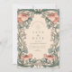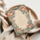 Dieses elegante Hochzeitsdesign besticht durch korallenfarbene Wildblumen, die durch einen fließenden Jugendstil-Rahmen gewebt werden. Der feine Kontrast zwischen Rot und gedämpften Grüntönen schafft eine romantische und dennoch raffinierte Atmosphäre, die sich ideal für Hochzeiten im Frühjahr oder im Sommer mit einem Vintagen botanischen Thema eignet.
