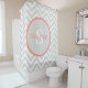 Fügen Sie Ihrem Badezimmerdekor eine einzigartige Touch mit einem Zickzack Monogram-Duschvorhang hinzu. Der Duschvorhang ist mit einem hellgrauen Zickzack Muster versehen, das mit einem in Korallen umrissenen Kreisemblem versehen ist. Weitere Artikel sind auch mit diesem Design erhältlich. Bitte kontaktieren Sie mich direkt für Hilfe bei der Personalisierung.