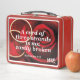 Stylish Inspirational Christian Quote A CORD OF THREE STRANDS Wedding Bible Verse Metal Lunch Box, with CUSTOMIZABLE MONOGRAM. The inspirational quote is based on Ecclesiastes 4:12. The design shows a red rose with golden wedding rings plus white script typography. Add your initials or name at the bottom (or delete). This Christian Metal Lunch Box would make an excellent faith-based gift for Weddings, Anniversaries, Valentine's Day, or 'Just Because' day. Matching gifts available.
