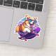 Eine skurrile, sportliche coole Sonnenbrille wird mitten in der Action gefangen und balanciert geschickt auf einem Skateboard. Die Zunge des Hundes liegt sorglos aus und strahlt eine fröhliche und aufregende Atmosphäre aus. 80er Jahre, Synthwave,