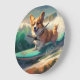 Corgi Beach Surfmalerei Große Wanduhr
