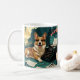 Corgi Dog mit glänzendem Fell und einem Gentleman Kaffeetasse