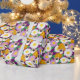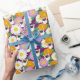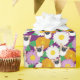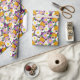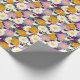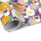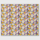 Fügen Sie den Geschenken eine niedliche Touch hinzu, mit diesem Verpackungspapier, das nahe Illustrationen einer Corgi-Hunde-Blume und lebendige Blume-Grafiken in Weiß, Gelb, Grün, Orange und Lavendel vor einem lila Hintergrund enthält.