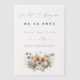 Vellum Papier Save the Date Vorlage mit Corgi Hund Design. Wildblumen und Welpenbild am Ende des durchsichtigen Papiers. Passen Sie Ihre Veranstaltung mit fünf Zeilen Text in Skript und gedruckten Schriftart in dunkelzwinkelblau an. Ändern Sie einfach die Textfarbe im Designwerkzeug oder frag mir um Hilfe.