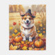 Corgi im Herbst hinterlässt Erntedank Kunst Fleecedecke