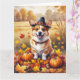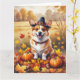 Corgi im Herbst hinterlässt Erntedank Kunst Karte