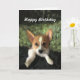 Niedlicher, schweißer Korgi-Welpe, der Ihnen einen guten Geburtstag wünscht. Anpassbarer Text.