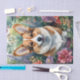 Auf dem Papiertücher befindet sich ein niedlicher Korgi, der in einem botanischen Rahmen mit üppig blühenden Pflanze nach vorne startet. Ein wunderschönes Blumenporträt eines verzierten Kaninchen mit bunten Blume und tiefgrünen Blätter, die den bezaubernden Hund umrahmen.