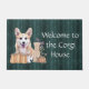 Begrüßen Sie Ihre Gäste mit unserem Corgi-Welpen in der Herbstfußmatte, die einen junges Mädchen- und Corgi-Cartoon kennzeichnet. Entworfen durch www.zazzle.com/CorgiGifts