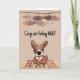 Holen Sie sich bald gut Karte für ein Haustier Corgi. Das Design besteht hauptsächlich aus Tans und Braun mit einem illustrierten Corgi, einer Blattdekoration und einem Teppich, auf dem der Hund sich aufsetzen kann. Alle Wörter auf der Karte können geändert werden. Dank Creative Fabrica für einige der Elemente in der Gestaltung.
