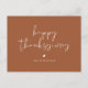 Die Happy Thanksgiving Postkarte besticht durch einen edlen handgeschriebenen Schriftart, festlichen Terrakotta-Hintergrund und modernes minimalistisches Design. Die einfache Hinterseite der Postkarte macht es einfach, Ihren Lieben eine spezielle Nachricht hinzuzufügen und diese Grußkarte ohne Umschlag zu versenden.