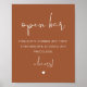 Dieses offene Bar besticht durch einen edlen handgeschriebenen Schriftart und modernes minimalistisches Design mit einer böhmischen Terrakotta und einer weißen Farbkombination. Ändern Sie ganz einfach die Schriftart- und Hintergrundfarbe, um sie Ihrem Event anzupassen. Das Hotel eignet sich ideal für Hochzeiten, Pärchenduschen, Brautparty, Verlobungsfeiern oder andere Veranstaltungen.