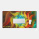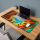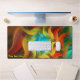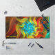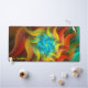 Ein mehrfarbiges Fraktal (rot, orange, blau), das einer blühenden Blume ähnelt. Passen Sie Ihren eigenen Text an.