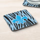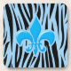 Hellblaues und schwarzes Zebra-Streifen-Muster mit blauer Lilie (fleur-de-lis) in der Mitte. Trendy fleur de lys (fleur-de-lys) Grafik für Mädchen, die Französisch inspiriert Geschenke oder Frauen, die Liebe chic Tier Print Muster.
