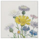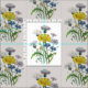 Alte botanische Darstellung von Maisblumen in Blau, Gelb und Weiß.